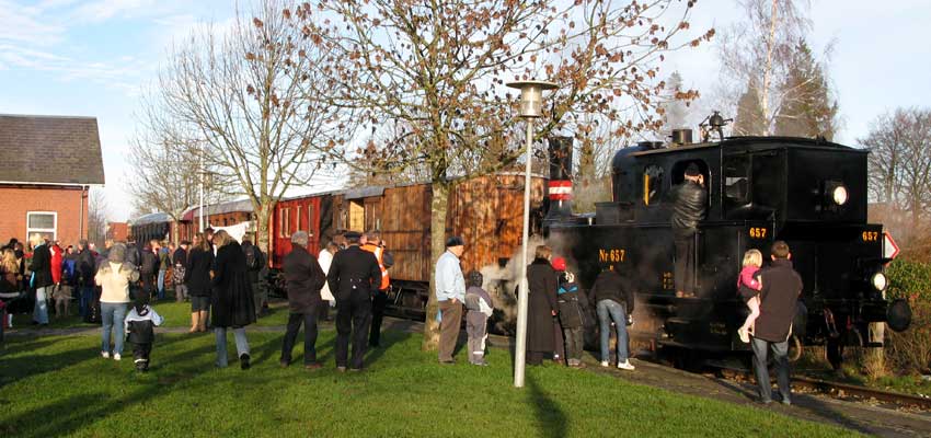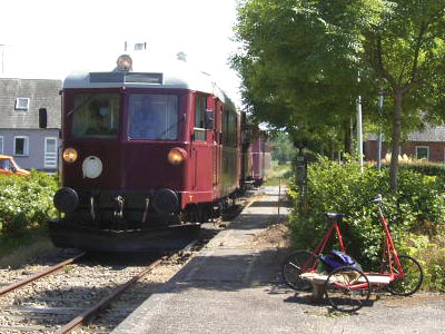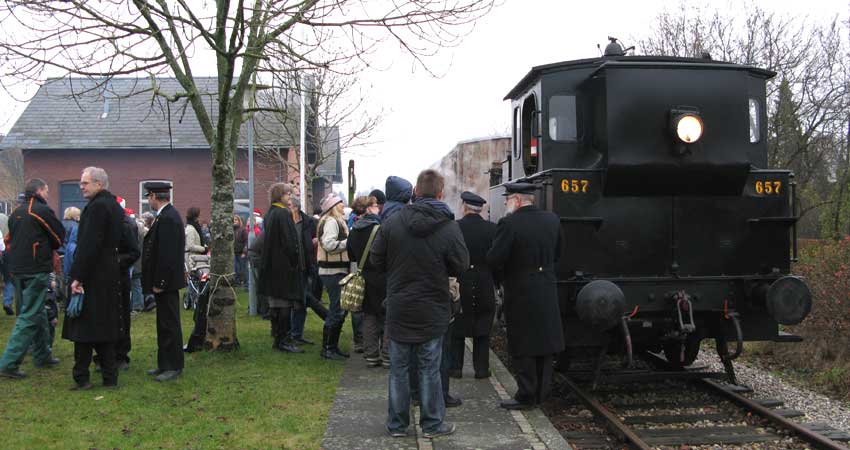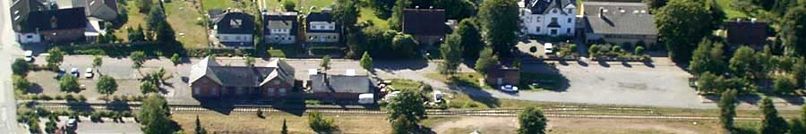 stationsbygningen er privatejet, men langs den er en lang perron. Nord for