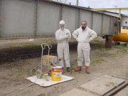 malerarbejdet havde SFvJ lånt udstyr til sprøjtemaling. Udstyret blev