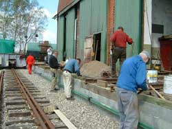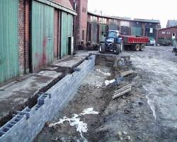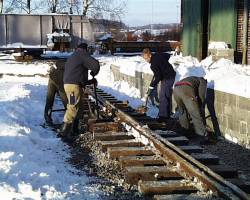 sidste del af støttemuren. Det var nu blevet tid for skinnelægning. Dels