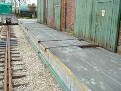 af banen. Oprindeligt skete kørsel til og fra remiserne via drejeskive og