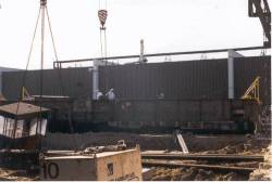 skydebroen løftet væk fra sin tidligere placering i Århus og op på blokvogn,